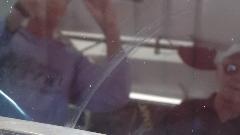 Then the road turned north, and we headed out of town on US-67, 59 miles to Marfa. As far as 12 miles on I was still looking at the international bridge in the rear view mirror. It is ultimately dark out here, and you can easily see lights at least 20 miles away when the land is flat enough. On a clear night bright stars blanket the black sky. After winding through more mountains we get flat land, and another Boarder Patrol check point (4th one today) before a fuel stop in Marfa. When I told navigator to scrape bugs off the windscreen (for the third time today), he said to get the picture first.
