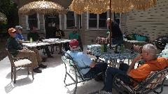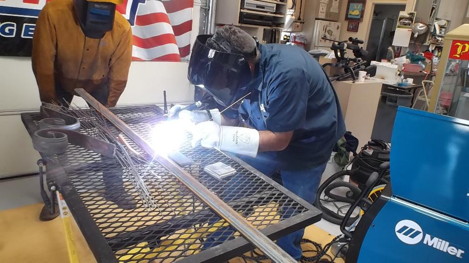 Additional tech stuff was demonstration TIG welding aluminum, and a variety of misadventures (demonstrating how to do it wrong) with the MIG welder. The after-party party resumed at Red Hawk County Club (golf course restaurant) on the north side of Las Cruces with a dozen remaining souls. Nice lunch, friendly folks in this club, and a nifty photo-opp with the Donna Ann Mountains in the background. Now tonight it seems we will be heading farther north for another appointment.