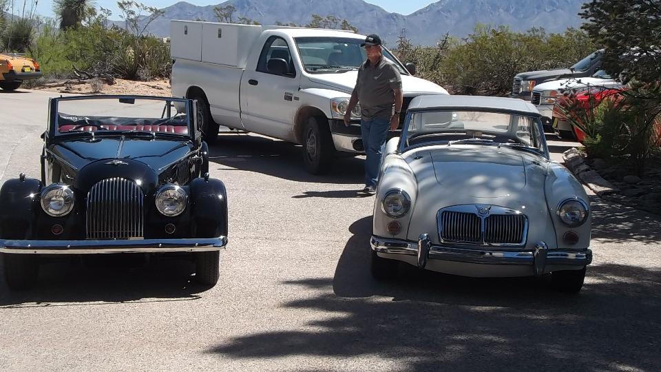 Today we have a tech session with British Motorcar Club of Southern New Mexico the home of Walt Kowalski in Las Cruces. I didn't count noses, but I think about 10 little British cars and at least a dozen people in attendance. Apparently several of the attendees knew who we were immediately on our arrival.