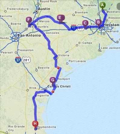 We then spent the rest of the day catching up business, arranging for shipping of replacement front hubs for the MGA (for 2-day shipping Monday to Wednesday), and making out a lengthy parts order to be shipped to same address in El Paso TX (to also to be shipped Monday). Then of course the obligatory time to post photos and notes from the past few days. With a bit of after dark traveling we cruised down US-183 and US-187 taking a short loop around Victoria, then south a bit more on US-77. We then took a little side trip on TX-239 and TX-35 taking a coastal route through Rockport to spend the night in Aransas Pass, a bit shy of Corpus Christi.