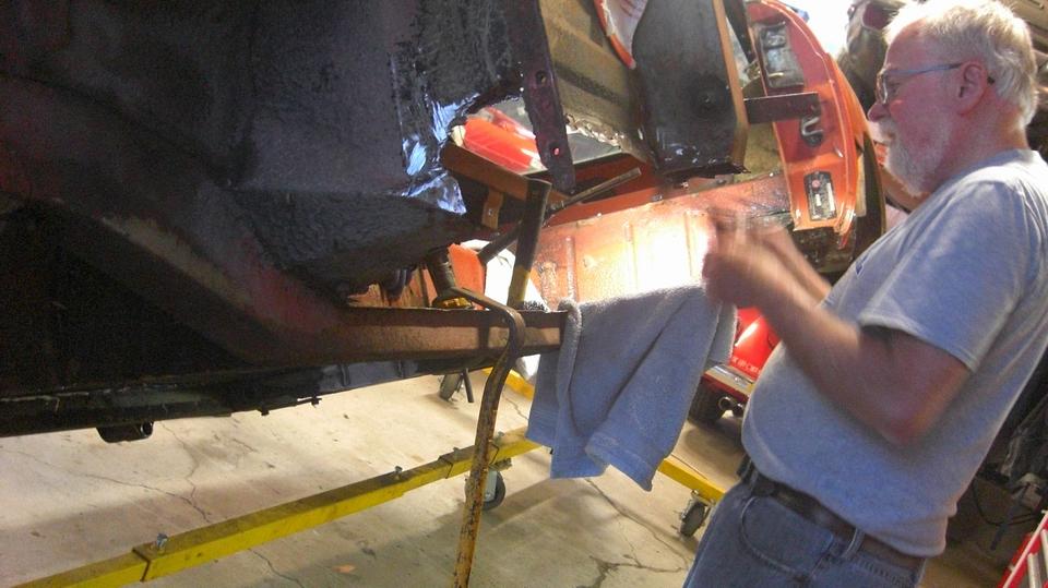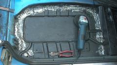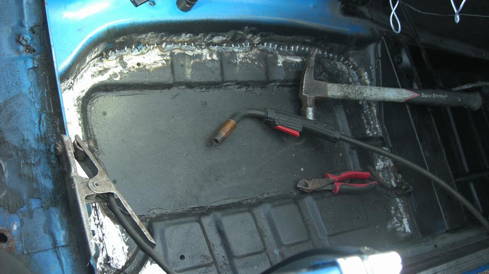 The Spirfire had new floor pans installed by a pro shop for big money, but they took some shortcuts and botched it up. So it was time to pull the seats out again to finish welding all around and grinding the welds flat.