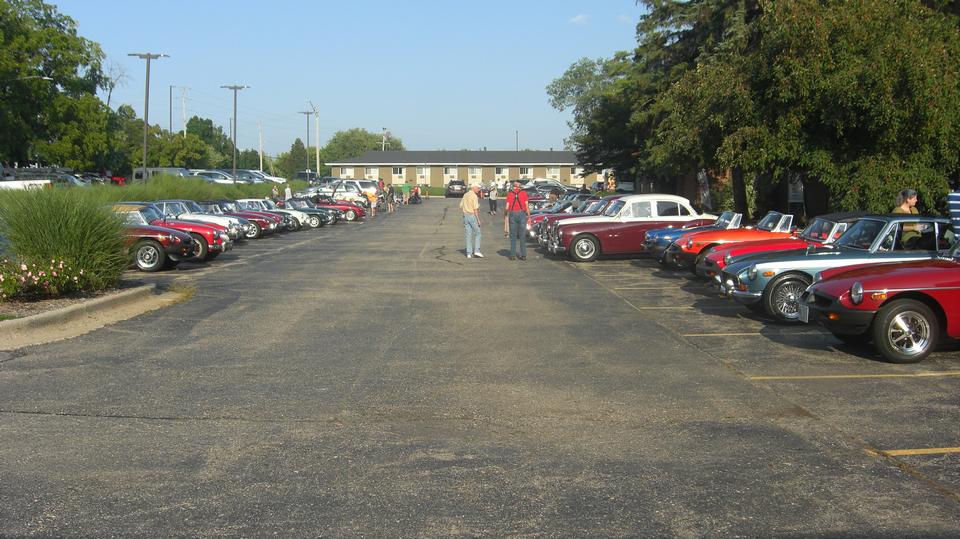 be the featured marque. The Chicagoland MG Club has been attending this event annually for several years now, but this is the first time for us since starting the road trip in 2014. There were 15 MGs, including the one Midget stranded between a couple of Mustangs.