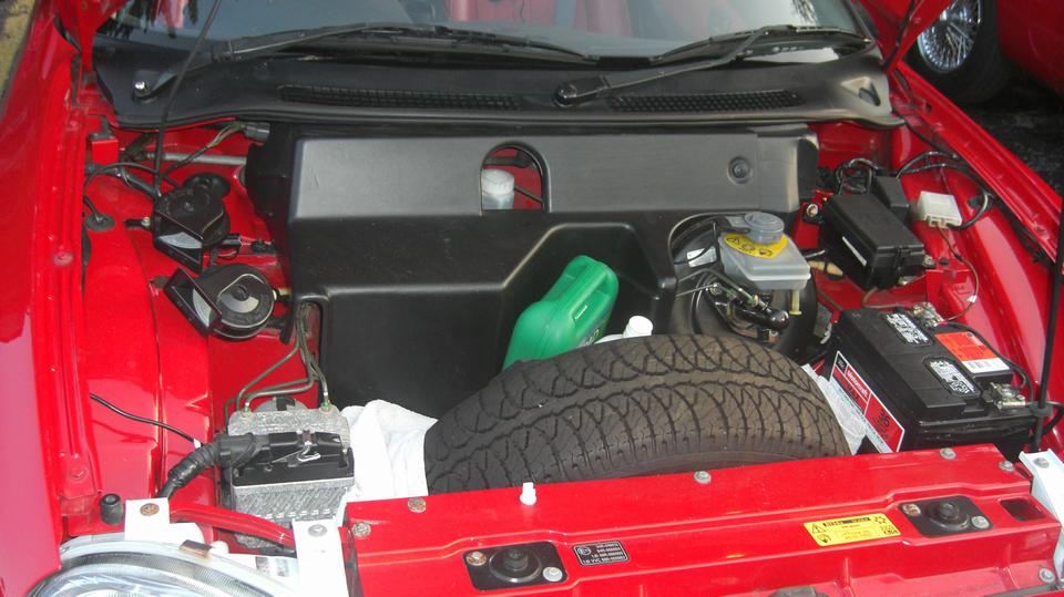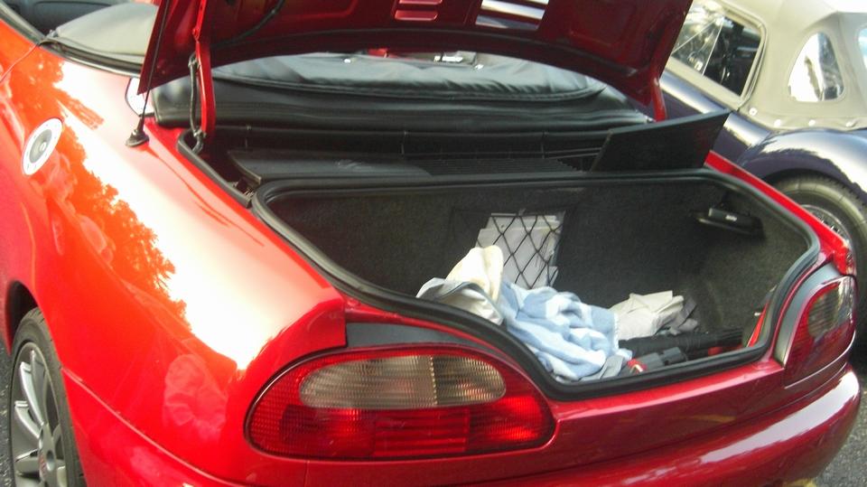 Only a small boot space in the rear, but like any small sports car, it is supposed to be fun, not necessarily practical, and these things are very popular in England. Coolant recovery bottle, oil dip stick and oil filler are accessible near the engine air vent under the boot lid. Pretty sure engine access is a bear for maintenance.