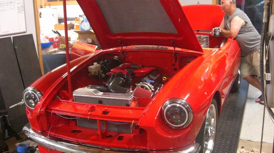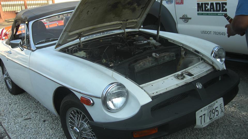 Another look at the MGA that tows the Escalade trailer. Nice supercharger. No wonder he has such a grin on his face. Also a look at the MGB GT with the Wabatso sun roof. The owner says it was water tight when new, but is now showing its age with seals drying out to leak, which may be hard to find replacement parts.