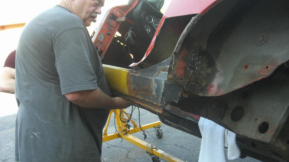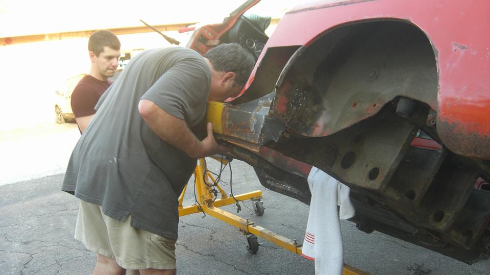 The club project car was getting some more cutting and grinding to remove more metal to clear space for a replacement body sill.