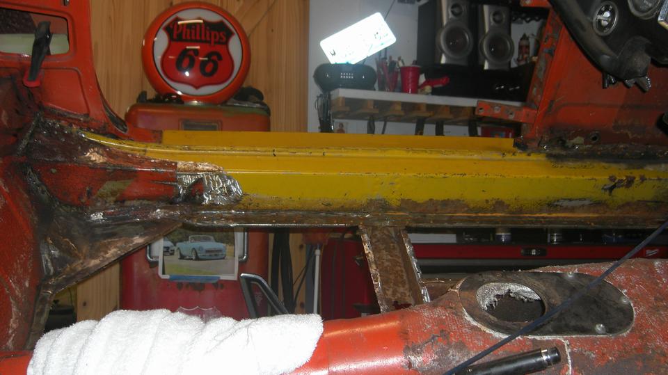 From the other end, it obviously needs more body work, having a rusted dog leg cut out. This is the one getting current attention, so it is progressing.