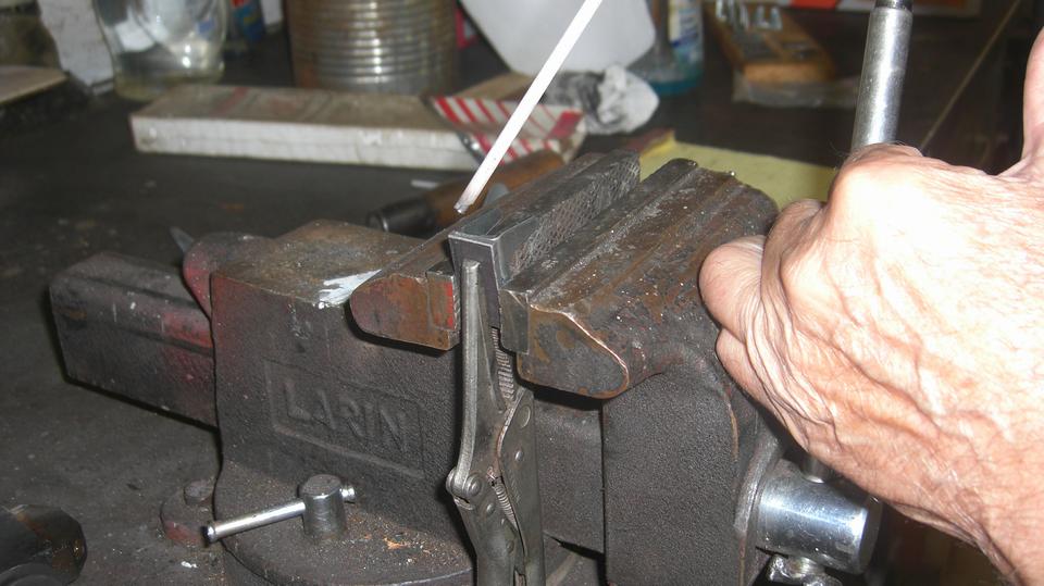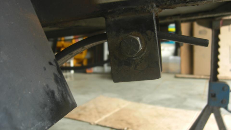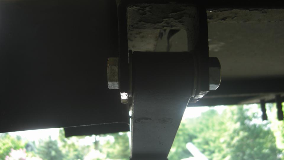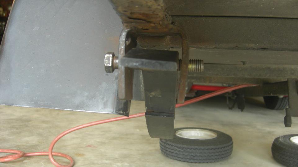 Okay, on to the leaf springs. At this time, and with materials in hand, it looks easier to drill out a few holes for larger front pivot bolts than it would be to change the spring eye bushings to smaller size. That didn't take too long.