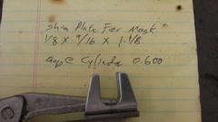Going to do more brake work on the car today, determined to reduce the backlash in the brake adjusters. Something I have been resisting doing for at least 10 years, as we were trying to coerce the vendors into supplying correct length brake shoes. Unfortunately it hasn't been working, and likely never will, so now we get to show the world how to fix it. These shims are made from 1/8-inch thick steel plate, cut to 9/16" wide and 1-1/8" long, to be tack welded to the adjuster masks. Each front drum brake adjuster gets one shim, two adjusters per wheel, because there are two slave cylinders up front. Each rear drum brake adjuster gets two shims for 1/4-inch total thickness, one adjuster per wheel, because there is only one slave cylinder in back to move two shoes, and the one double thickness shim is working to space out two brake shoes.