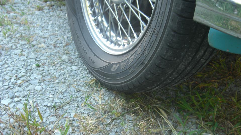 A quick review of Shane's daily driver MGA. The fat tires are 195/65R15 stuffed onto 4-1/2" wide wire wheels. Kind of reminds me of my autocross days back in the 90's when I ran 195/60R15's on the narrow wheels to stay in Stock class. Those were the tires the local dealer had in stock on the day Shane needed tires. We took a cruise on some side roads and found the tires to be moderately harsh riding from the stiff sidewalls, and heavy steering at low speed do to the wide tread. But they work and handle okay.