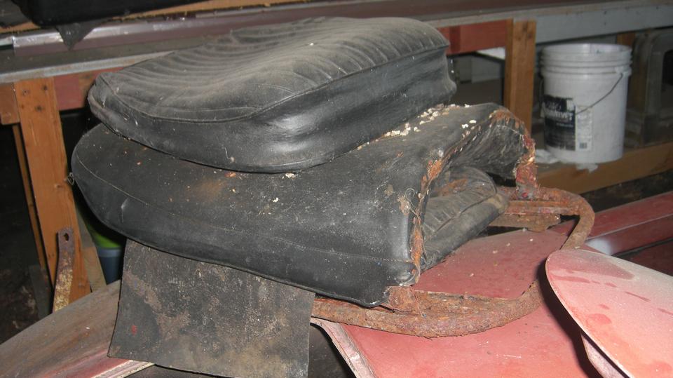 Now #6 in another open work space, and this one was more impressive. I went around this one three times, almost in disbelief. Looks like it is all here, nothing missing, never been pranged, everything straight, and no significant rust. Must have spent its whole life in dry storage. Might be low mileage, and nearly everything appears to be original issue parts. All original, right down to the Hondura cover on the spare tire.