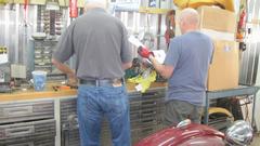 Tinkering day at Tech Central again. Guys were working at reviving the MGB 4-synchro gearbox. Last week it was internally rusted and frozen up. After getting it to turn and shift into all gears, they filled it with kerosene and let it soak for a week.