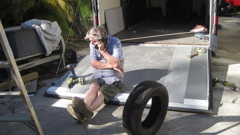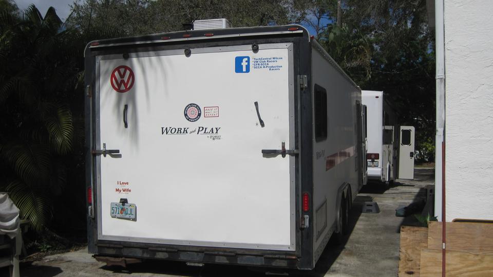 We had a mid day BBQ lunch, and most of the guys would ante up a donation to replace a dead refrigerator. After finishing a few small chores, we got the Rabbit race car loaded into the box trailer. First run with the repaired tail gate, and it appears to work well. Jerry and wife and one friend are heading out this afternoon for a race weekend, should be back Sunday evening.
