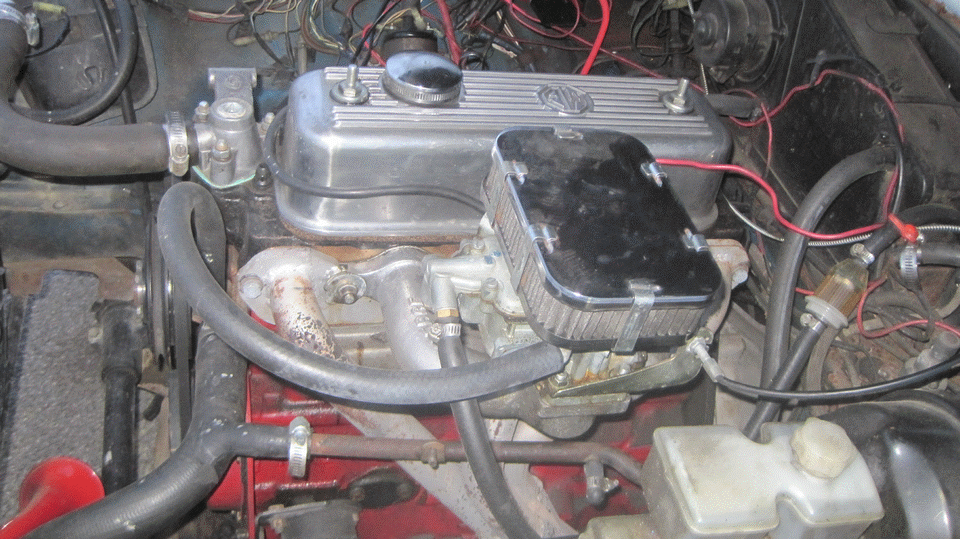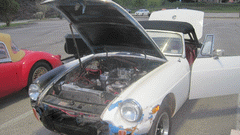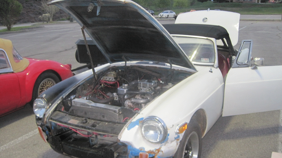 MGB clutch (and a Datsun 280Z 5-speed gearbox), and we were off to his place in Blaine, TN after the meeting, a bit more than 40 miles in 50+ minutes by way of the mountain roads after the meeting. -- Also after the meeting there was an MGB in the car park with some Weber carburetor problems, and we would see more of this one later.