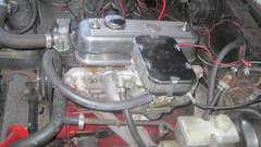 Car didn't want to start again this morning. Half a compression test on two cylinders, okay. Navigator suggests trying a new condenser, probably not the problem, but maybe do it to narrow the field of possibilities. Remove dizzy cap, pull off the side wire, loosen clamp bolt 1/2 turn, and pull out the distributor. One minute, and much easier than trying to work on it in situ. Look inside to find the contact points not opening. Really, you think that might have something to do with it? Adjust points to approximate thumbnail size gap, about 30 degrees open 60 degrees closed (dwell), another minute well spent. Reinstall/realign distributor, tighten clamp bolt 1/2 turn, reconnect side wire, and reinstall the cap and HT wires. What was that, about five minutes start to finish, including putting the wrench and screwdriver away? Fired right up and ran perfectly. kick myself for not fixing this sooner, but it had been raining incessantly, this being the first decent weather day since Tuesday.