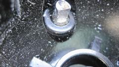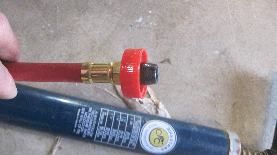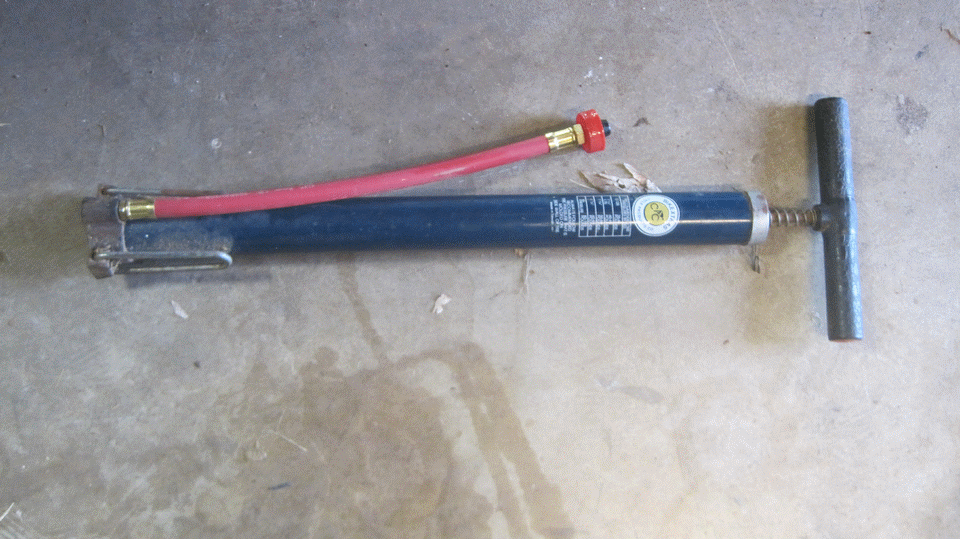 tool for MGA, but the old fabric covered hose was knackered. Then we looked at the tire filling nozzle from the air compressor with a short hose, and that one had the same thread on the input end, so we installed that one on the hand pump. Then we noticed that the plastic cap from a brake fluid bottle had the same thread as the clutch master cylinder reservoir, so snatch one of those, drill a hole in it, and install that on the output end of the good hose. Cute, huh? Then use the hand pump to gently apply a little pressure to the clutch master reservoir, and very quickly the bleed screw released all the air and had the clutch slave moving half an inch, sweet as could be.