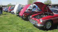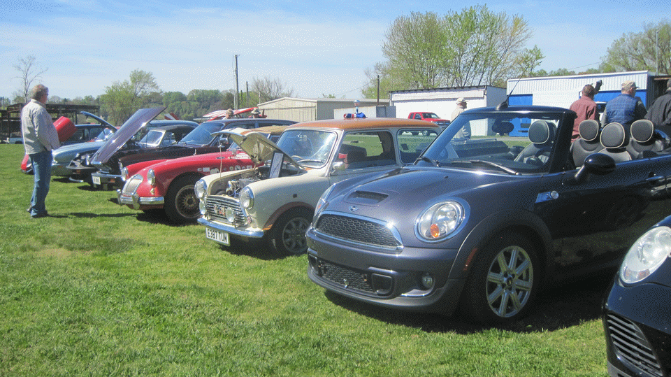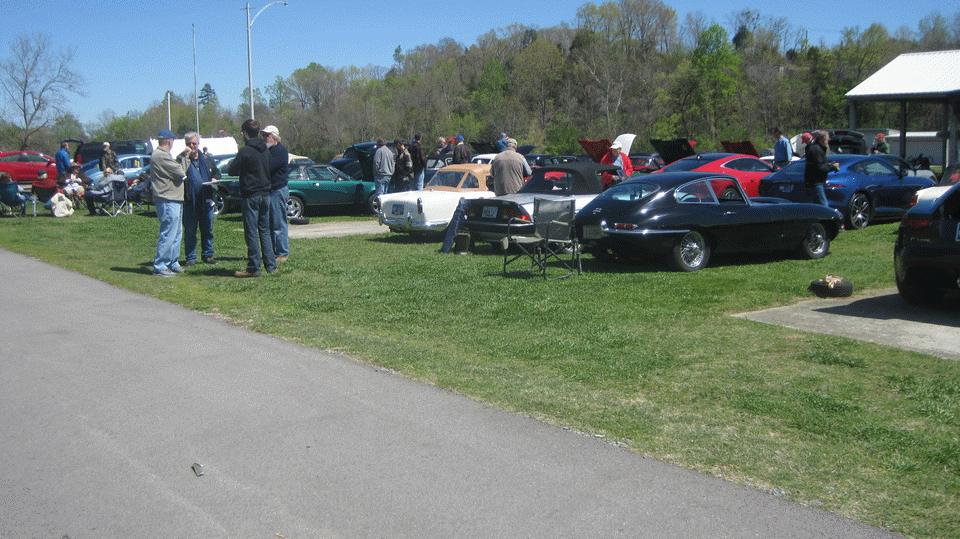 Ah, there's the gang we were looking for. This is the 19th April Fools Bash, a "multi-club gathering and general good time", hosted this year by Appalachian British Car Society and East Tennessee British Car Club. Rousting around for a while I counted at least 50 little British cars and close to 100 people all here for picnic and to have a good time. Yes it is a car show, but no formalities, no judging, no trophies, just plenty of time for chat and tire kicking. I even bumped into a few transplants from Chicagoland MG Club.