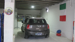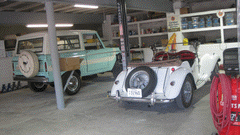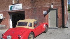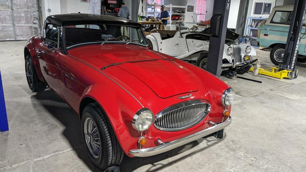 There are already a couple of young (I think) assistant technician type fellows, so the business is off to a good start. The flat bed trailer showed up to unload the Silverstone Austin Healey 3000, and the guys were