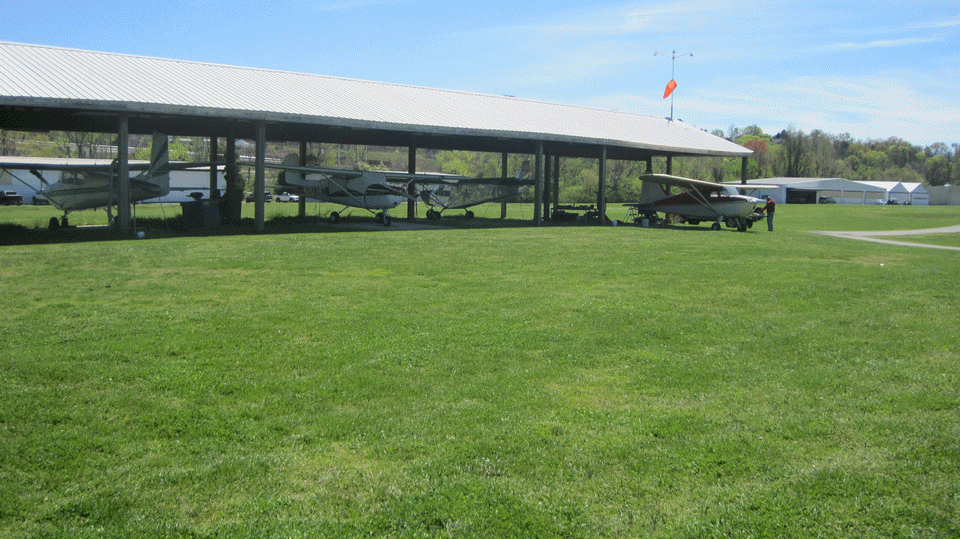 Up for breakfast and a little more chat before we had to head out. Nearly an hour to make our way out of the mountains down to US-11W and TN Hwy-126 (Alcoa Highway). After fighting our way through an ever evolving construction zone (with a few more LBC following the blind leader). we made only one wrong turn. Then an inquiry at a construction shack, and back on route. A few minutes later crossing some unmarked rail road tracks to get into Skyranch Airport, a little place with grass runway and a few hangers for light general aviation planes.