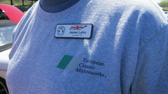 There was one slightly odd car (that I was crawling underneath). It was a dead ringer copy of an Austin Healey 3000, including all of the badging, but with fiberglass body, heavily flared wheel arches, wide wheels and tires, and a V8 engine. It is a rather convincing Sebring kit car. It apparently hit a rather serious bump or pothole and crept into the show with the left rear tire rubbing on the fiberglass wheel arch. As we were diagnosing a broken leaf spring, and trying to figure out how to get the car towed without driving it out, a nice middle age chap introduced himself and proceeded to provide the solution. Say hello to Jesse Lehn (last picture above), who has just opened a new classic car repair shop called European Classic Motorworks in Maryville, Tennessee last January. Gotta get that card, and we will go visit his shop as soon as we take care of the broken car. A friend of Jesse's was soon headed out and returning with a flat bed trailer.