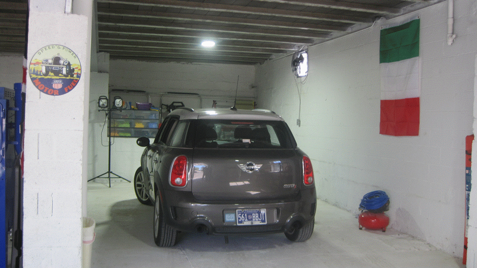 When we left we took a short side trip to a local WiFi spot, mostly to kill an hour, then headed over to Jesse's shop. We arrived before the Silverstone on the trailer, and had time for a tour of the new shop. This is the lower level and mechanical service area for what used to be a car dealer. The right side bay was a paint shop a long time ago, and Jesse will soon be converting it back to a paint shop again. The center area about three bays wide is open workshop, and he will soon be installing a car lift. To the far left is an elevated storage space over lots of gravel fill. On the wish list is (maybe) to remove the gravel and turn that space into another work bay (big job with low priority at this time).