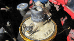 With running time the aluminum HT posts undergo electrolytic corrosion with constant spark arcing from rotor tip to posts in the cap. Surface of the alloy post eventually corrodes from pure aluminum to aluminum oxide, similar to iron rusting. But instead of material disappearing, the aluminum oxide stays put and turns into a good corrosion inhibitor. Unfortunately aluminum oxide is also a very good insulator, so once the surface is converted the HT spark has to find another path to ground, so it sparks to one side of the terminal post. Eventually the whole near side of the post gets converted, and the spark has to reach farther around to the side or back of the post to find ground return. The longer the spark path the higher the resistance, so it finally starts to misfire with lower voltage at the spark plugs. Getting only worse with time, eventually it runs like crap, or not at all, which is where we are today.