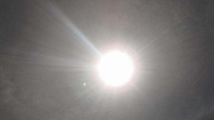 First contact at 12:42-pm. Ambient light appears to be nearly full sun until more than half of the disc is covered, so the first picture at 1:30 is still pretty much full bright with lots of refraction in the atmosphere making it look quite large. 1:56 and 1:57 are still a couple minutes before full eclipse, but that is when dimming is progressing rapidly.
