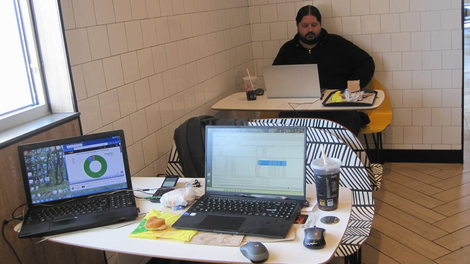 Then we continued on to a Road Ranger truck stop at north edge of Champaign (familiar territory) where we knew there was a good WiFi spot. Lunch first, then playing with the new computer from mid day to 10-pm closing time. First issue was getting past a stupid Microsoft log-in page where MS didn't accept my existing password and insisted on sending me an email message with a verification code to reset the password. But of course my old computer couldn't log into WiFi, so no access to email to receive the message (Catch 22). Elliot's computer was on-line, but he doesn't have the right program to log into the POP box on my web site server to download my email. That could kill hours to move software from my machine to his and get it configured to work. The solution then was to create a new e-mail account for me on Hotmail, let MS send the verification code there, and retrieve it with his computer. Cute. All that screwing around just to receive a single email message, and it only killed two hours before enabling boot-up and log-in to the new computer.