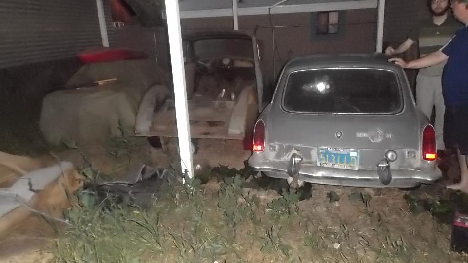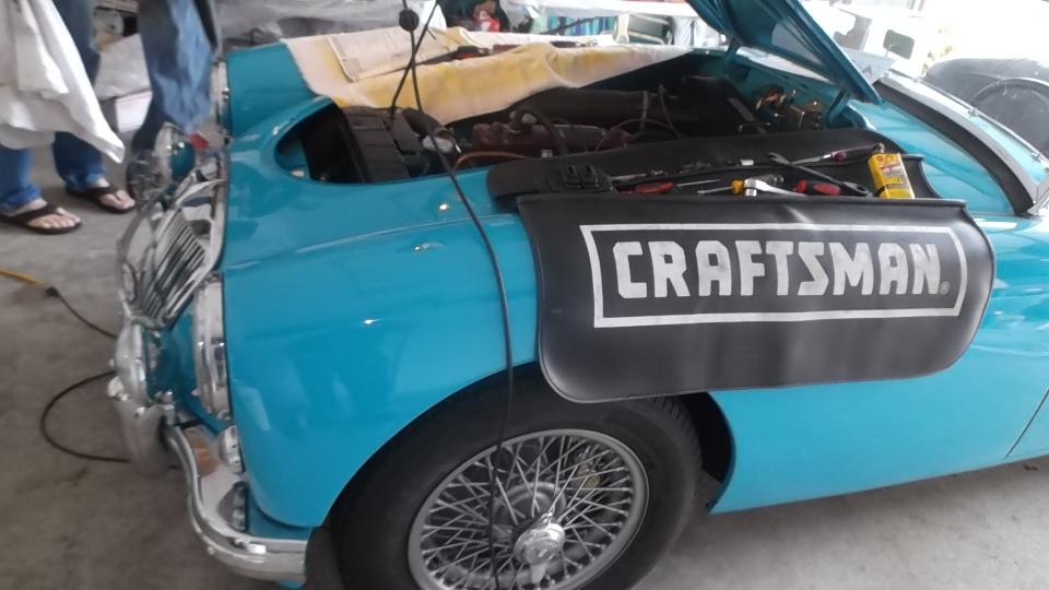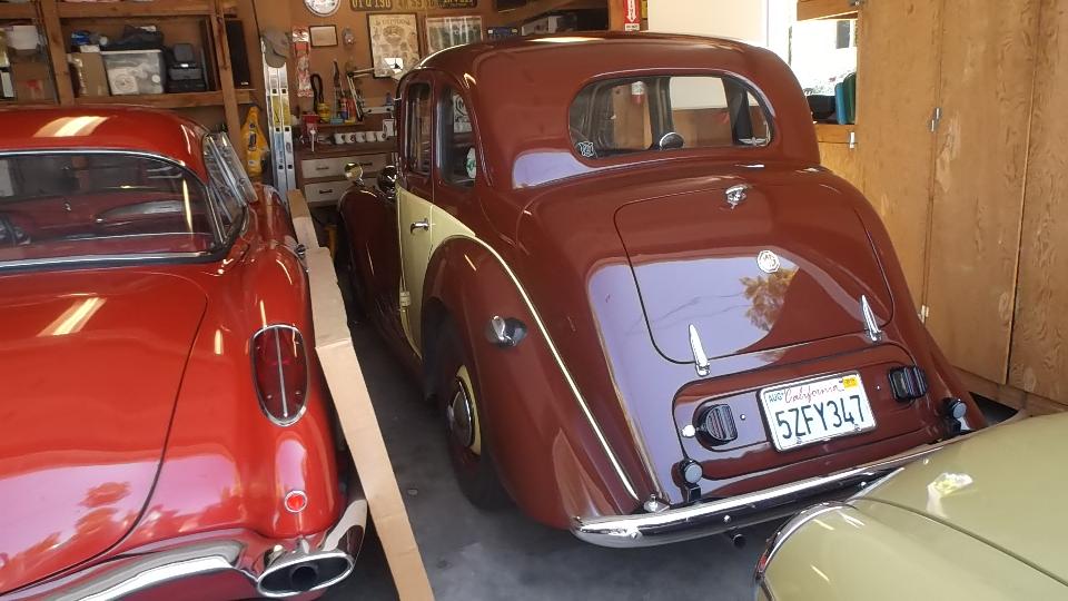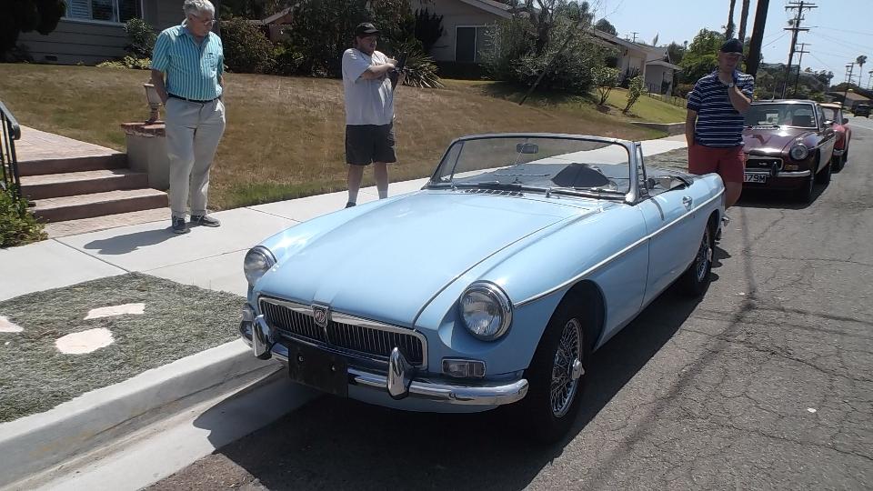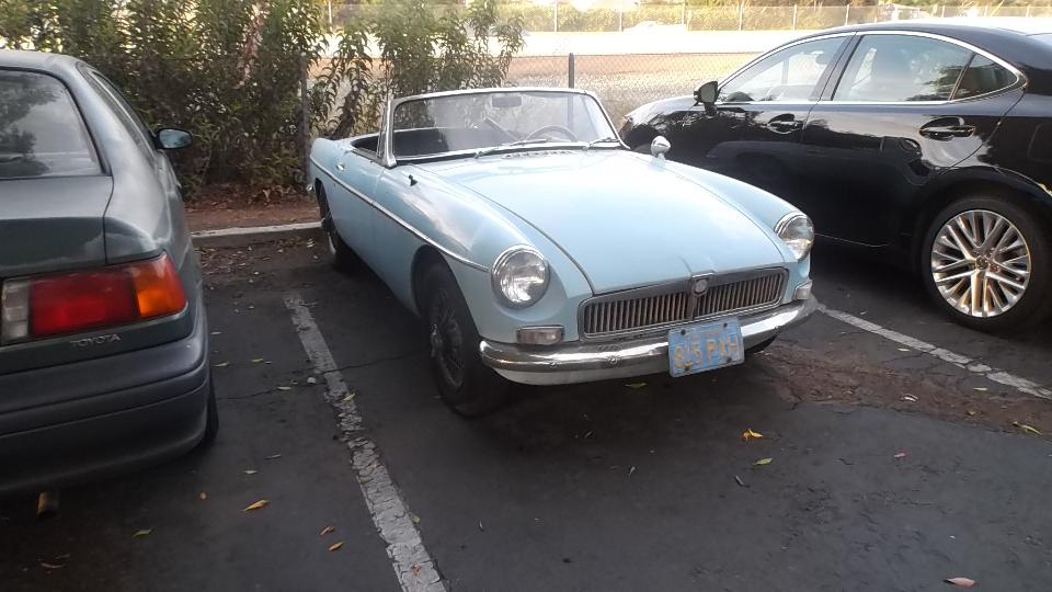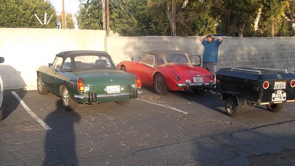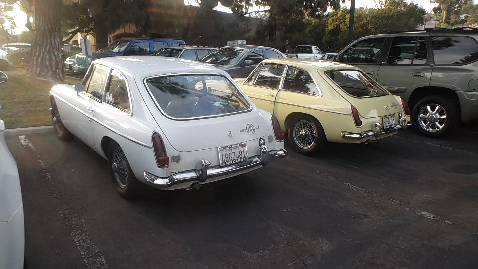 We had one appointment today, stopped in the evening to visit Dave Ambrose (and son) in Poway, CA. Dave has an MGB GT needing a lot of work, and a Morris Traveller needing complete restoration, and a TR Spitfire under wraps. His son has a daily driver MG Midget, appropriately faded from the southern California sun.