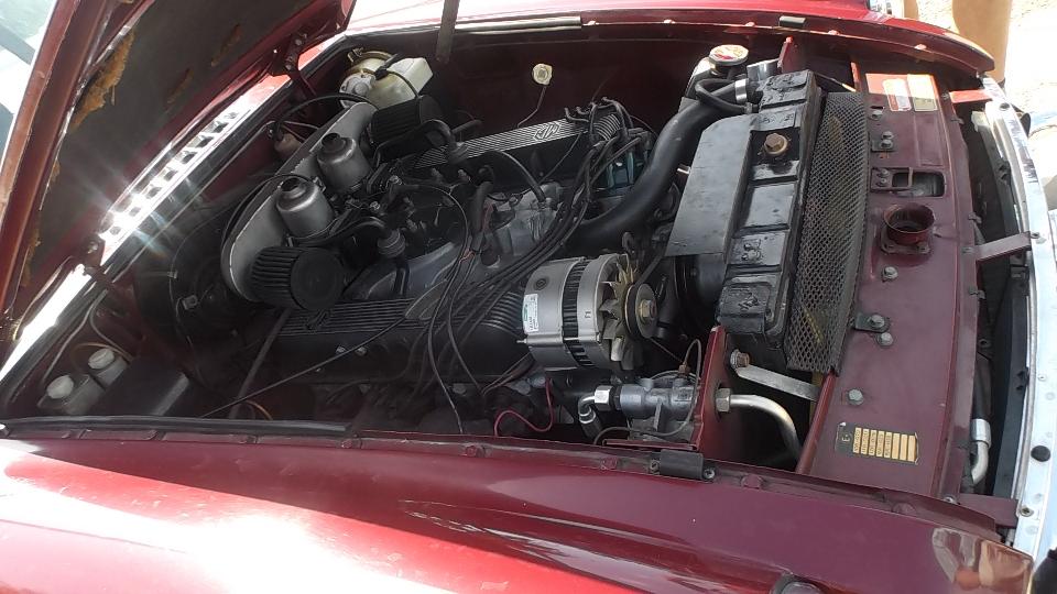 Each of Greg's cars has a small amount of modification. The GT V8 has air intakes deleted in favor of K&N filters for the leaner look. No need for the original heat riser intakes in southern California. The pull handle MGB originally with G-type engine has been retrofit with remote brake booster and GA-type PCV valve (which considerably reduces oil dripping). The Twin Cam has been fit with low compression pistons and an MGA distributor with vacuum advance unit (hurray, another daily driver).