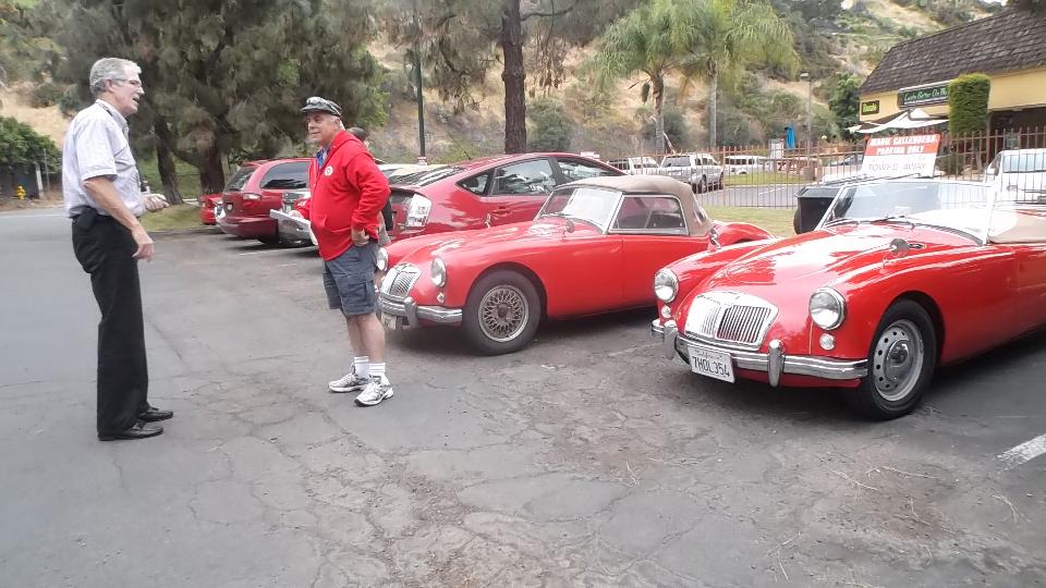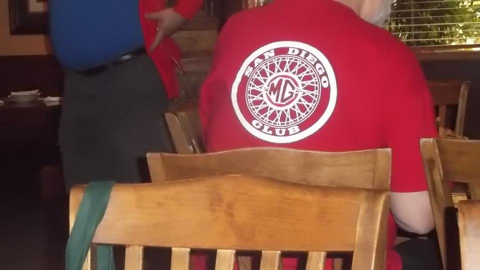 Vintage MG Club of Southern California has a dinner meeting at 6:30 in Santa Ana. MapQuest calls it a 90 minute drive, and it is 4pm, so we should have plenty of time (but of course this is California). Hop back on US-101 (Ventura Freeway) 41 miles. Merge onto the Hollywood Freeway, 12 miles, smack into downtown Los Angeles during evening rush hour stop and crawl traffic. Merge onto the Santa Ana Freeway (US-101), another 2 miles of stop and crawl. Merge onto continuation of the Santa Ana Freeway (I-5 south) for 26 miles, getting out of downtown LA and finally doing 4th gear occasionally. We finally arrived in Santa Ana at 6:50 having consumed 2-hr 45-min to do the 90 minute trip.
