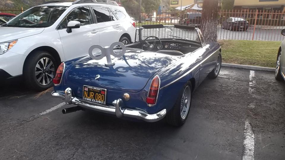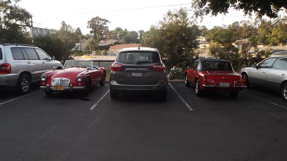 Tonight we had a dinner meeting with San Diego MG Club, and we did arrive in time for dinner this time. Half through dinner but before the business meeting I took a stroll for pictures in the car park.