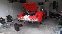 A quick visit today with Greg Bass in La Jolla, CA. He has this nice factory original MGB GT V8, and an early pull-handle MGB, and an MGA Twin Cam. They are all regular driver cars needing nothing today. The GT in the garage belongs to a friend Scott, in for a bit of mechanical service.