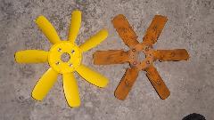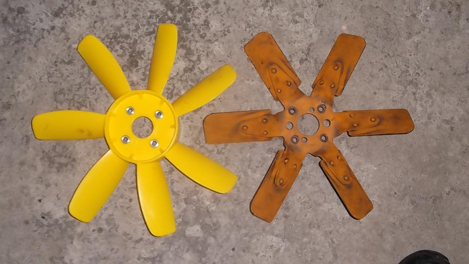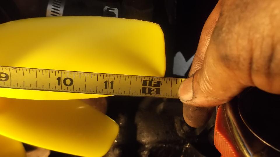 Comparing the old and new fans, the plastic fan is slightly larger diameter (12-5/16") than the original steel fan (12"). This made it necessary to trim1/8-inch from the left side of the fan shroud to clear the blade tips.