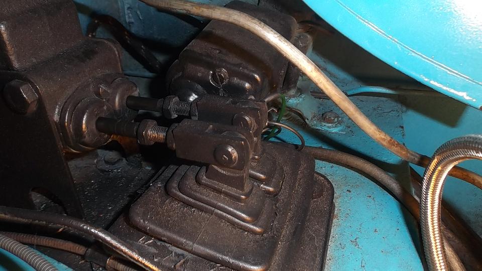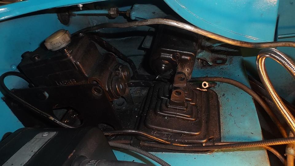 So remove clevis pins and the front bolt of the master cylinder mount, and raise the front of the master cylinder slightly to remove the pushrods. Then remove the pedal excluder rubber boot, disconnect the pedal return springs, and remove the pedal pivot bolt to drop the pedals out of sight. Remove the front bolt on top and two nuts underneath the rear to release the mounting bracket. Remove two wiper arms from the spindles, disconnect the flare nut connecting the pipe to the gearbox and PULL to extract the wiper motor as the drive cable is withdrawn from the pipe. In this case the first pipe curve had a small kink that caused friction drag and noise. We disassembled the wiper motor and gearbox for cleaning and inspection. The carbon brushes are in particularly good condition as the car has very low original mileage. It takes time to clean out old dried grease and re-lube the assembly. We pulled the wheel boxes and drive pipes for cleaning as well. Reassembly will wait for another day as time ran late (and we were missing one rubber grommet for the mounting bracket).