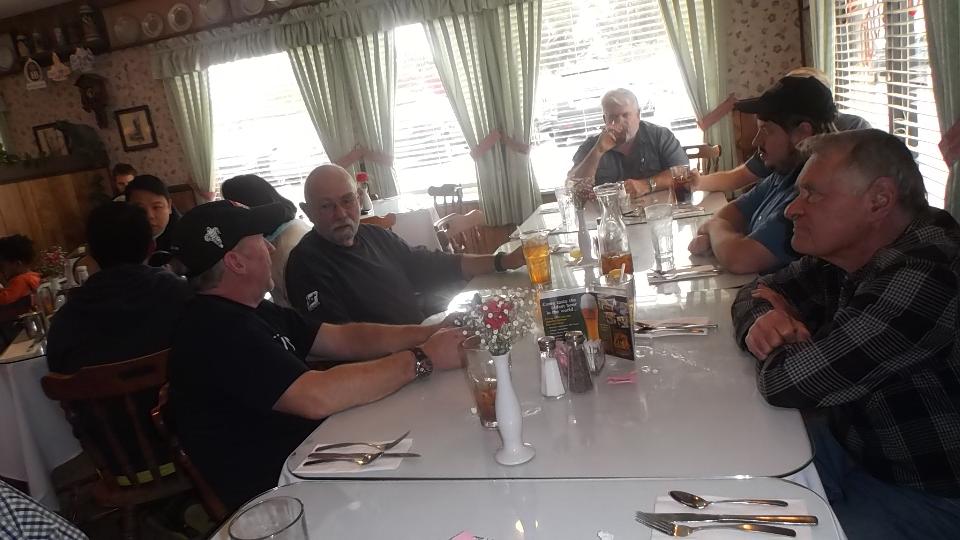 All said and done, most of the gang wandered over to Jagerhaus for lunch just about noonish. With all assembled we had eight around the table, good time chatting about vintage MGs, Of course all MGs in North America must be vintage by now (the newest MGB now being 35 years old).