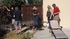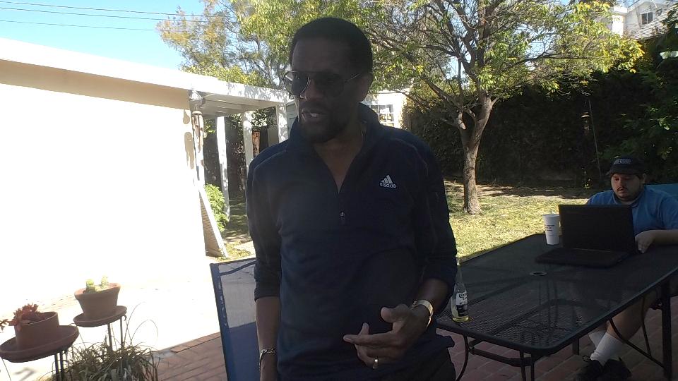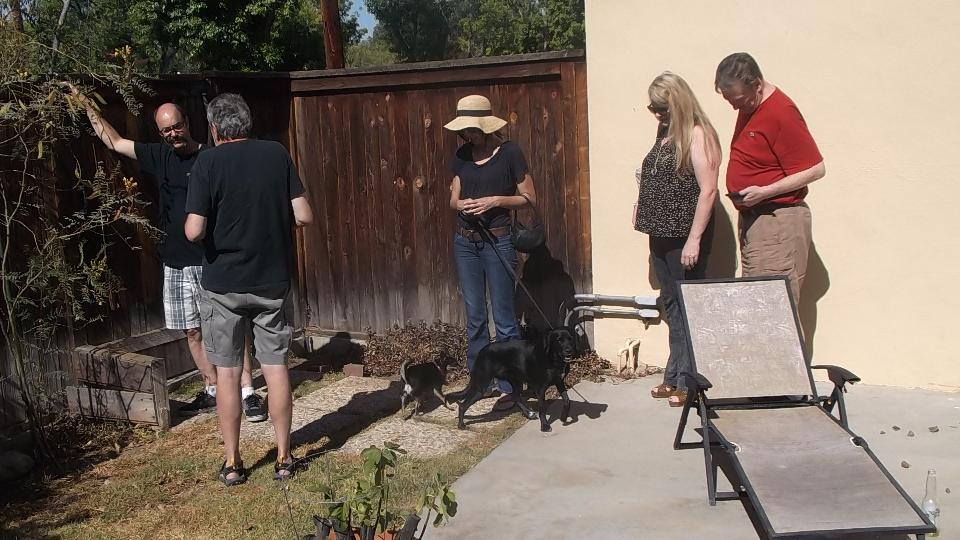 Couple of appointments today, starting with Adam Lombard in Encino, CA. That would be a trip through LA on the expressway, marginally slow, one dog in the road stopping traffic momentarily, so the planned hour turned into an hour 20 minutes. Adam had made a few calls and gathered up a few friends before we arrived.
