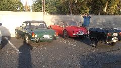 Visitors above one MGA and half a dozen friends. Residents below one MG YB saloon and one MGB GT.