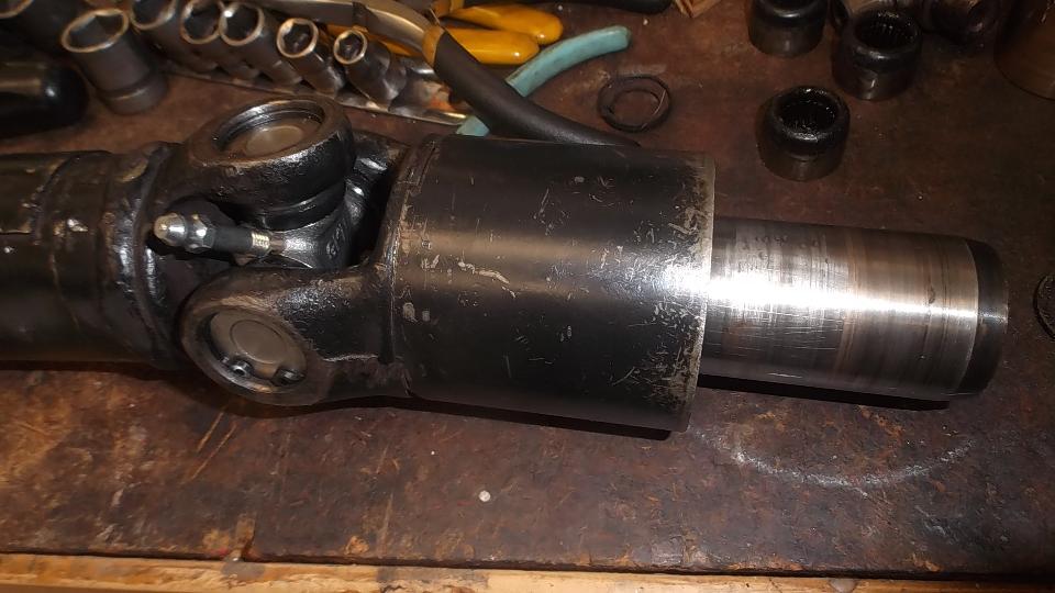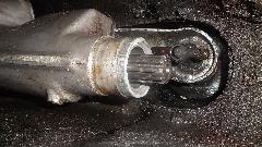 I did find some wear on the halfshaft splines where they engage the differential sun gears. I did not find any stress cracks at the bite marks, so this is not in peril of immediate failure. But clearance in these splines is amplified by the ring and pinion reduction ratio, increasing backlash about 4x at the differential input shaft. Combining ring and pinion mesh backlash plus differential gear backlash plus halfshaft splines backlash adds up to about 1/4-inch backlash at the edge of the differential input flange. While it is a bit irritating it is not in any danger of imminent failure,