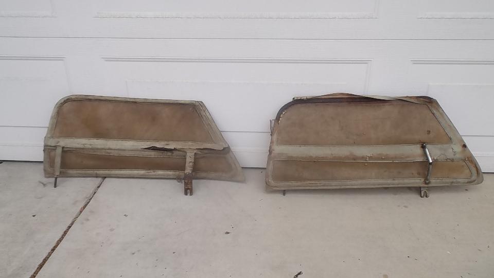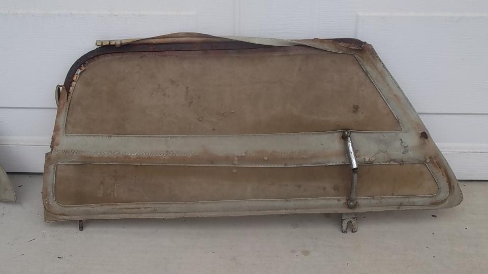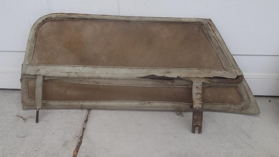 The second is an original set for a roadster with a bolt-on aluminum hardtop. The hallmark here is a very narrow (almost none) flange on the fabric around the top and rear edges (because the hardtop has a built-in seal in these areas). A similar side curtain was used for 1600 production with the fiberglass hardtop. As