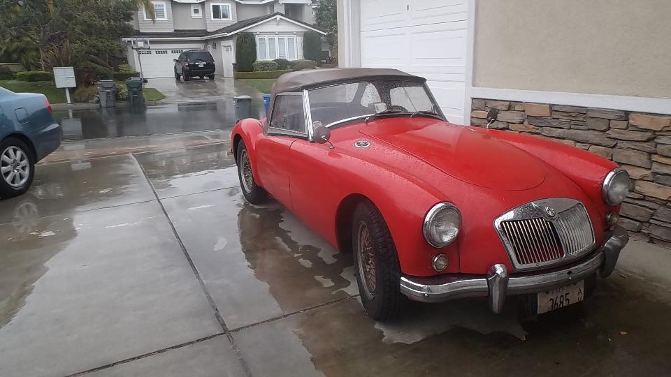 After the meeting (and a bit of tire kicking in the car park) we followed a member's "non-MG" car about 30 miles up the coast to Encinitas. Here we got to meet a special MGA belonging to Scott and Mary Davidson. This car has been in the family for more than 50 years. It has a few minor issues which we will address later. Tonight the late night social chat was most important, until things got quiet and I got to go to work to post these photos and notes.