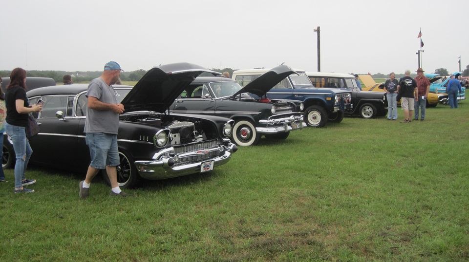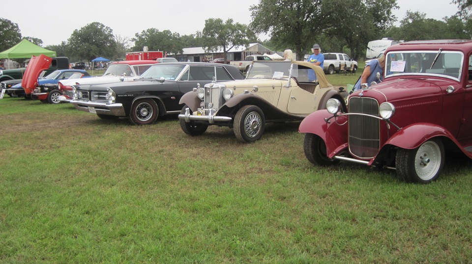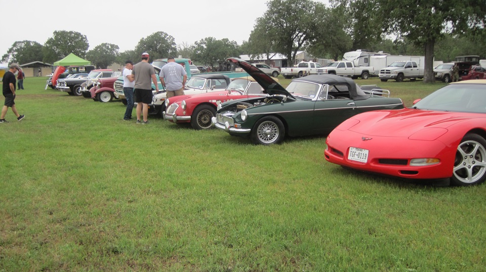 Arrived a little early, killed half an hour before meeting a couple MGBs in a Home Depot parking lot on North 281 in San Antonio. This was a contingent from Alamo MG Association. Supposed to be a 42 mile trip for Wings and Wheels car show at Pioneer Flight Museum in Kingsbury, TX. Fairly heavy overcast, so maybe some people thought the old birds would not be flying. One incoming phone call said one more car coming, but they would catch up later, so the three MGs were heading east. Slow going on side roads, and more construction delays. but we finally got there. Not sure how old the Corvette is, but it didn't strike me as vintage. The rest of this stuff, yeah, I could have been driving any of those as my first car.