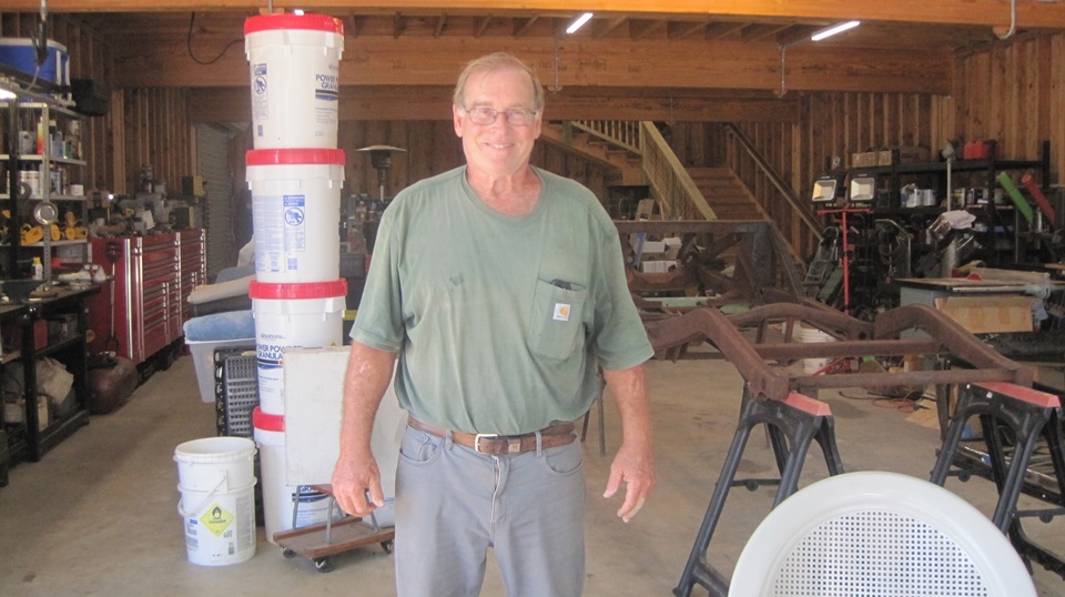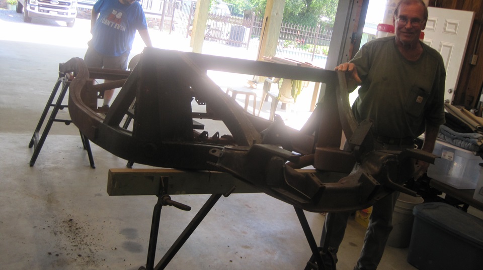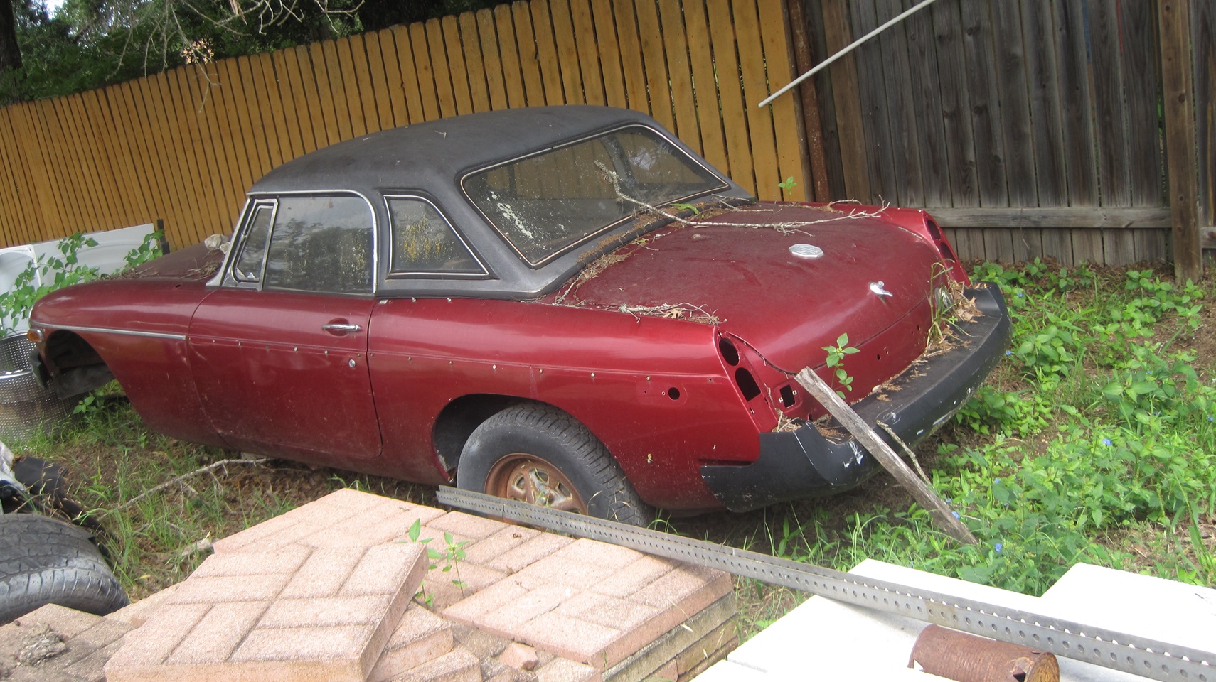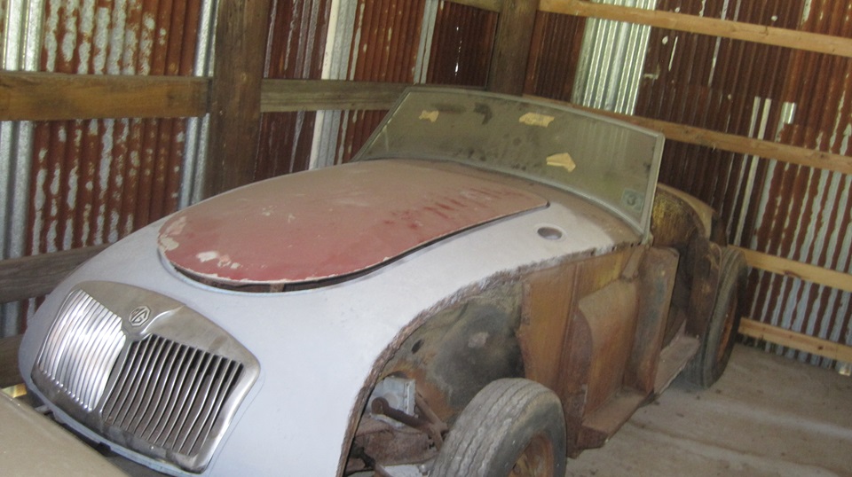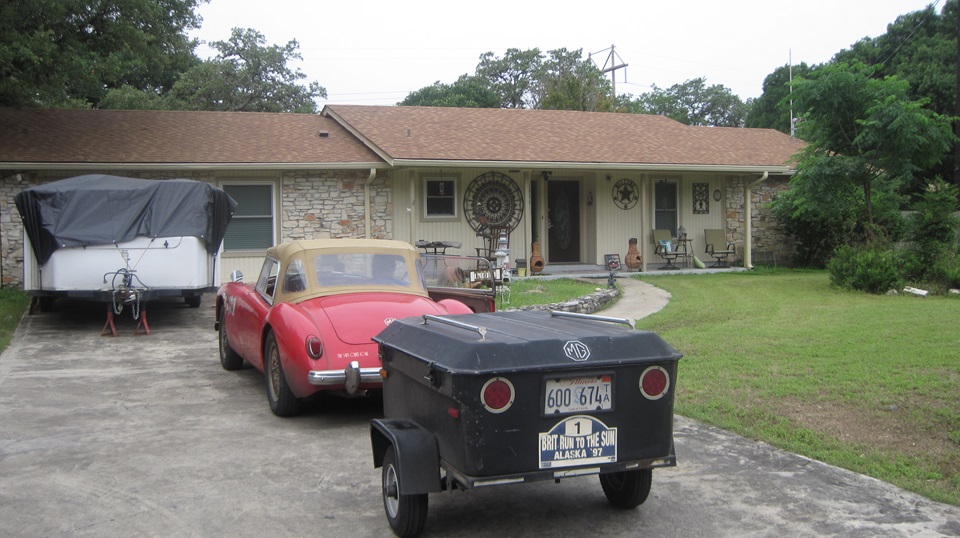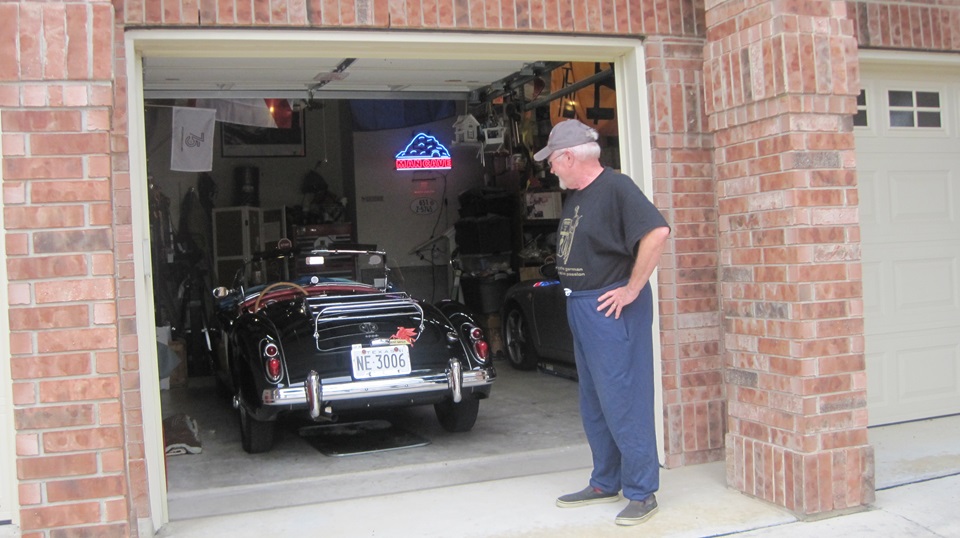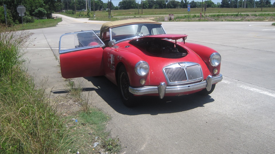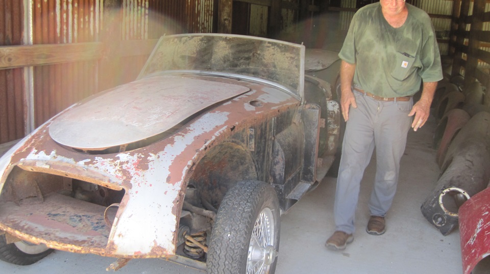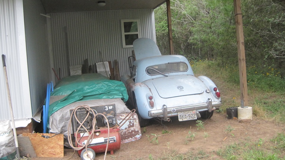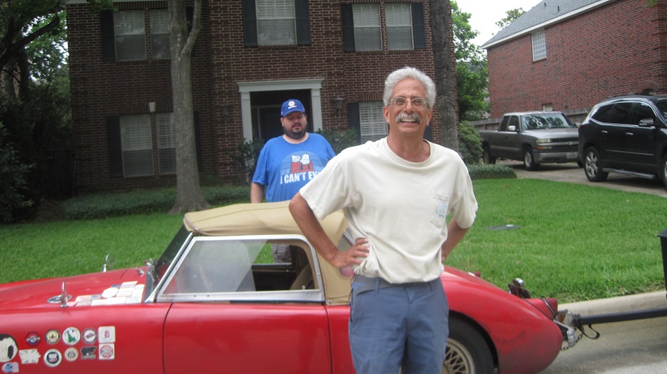 By mid day we were off to visit Jon Etheredge in rural Red Rock, Texas. He has a mostly rust free (Texas car) MGA 1600 Coupe, which is begging for lot of attention. It came to him with a prior paint-over-piping repaint, which will require time for body disassembly for sanding, priming and repainting.