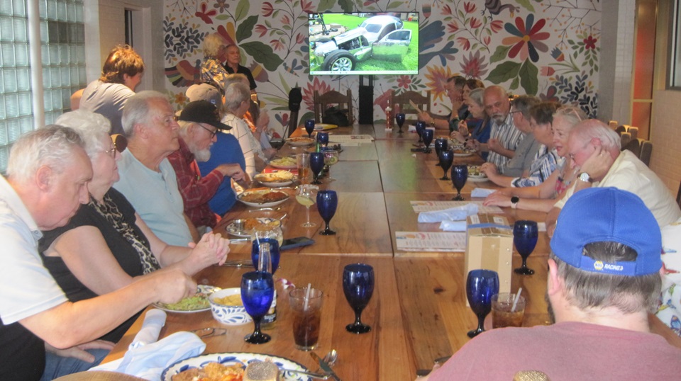 We dropped in on a club meeting this evening with Alamo MG Association in San Antonio, Texas. There were only a few MGs in front, but lots of people haulers. I was counting 26 people in the dining room, give or take a couple. We were here once before, nine years earlier in 2015. A few people remembered us. A few more knew us from somewhere else.