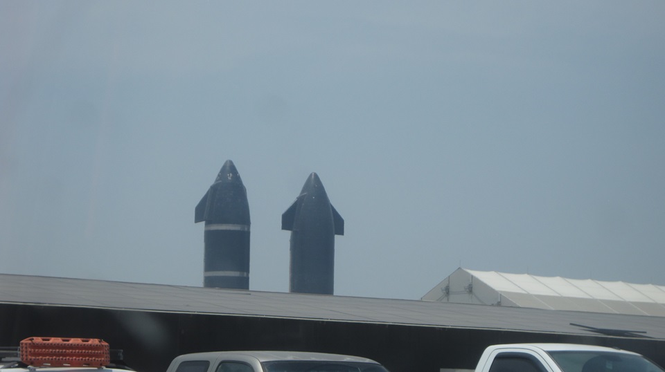 - - Continuing on, TX-4, turned east heading for the Gulf of Mexico. Follow Boca Chica Hwy another 20 miles takes us past Starbase, "Gateway to Mars". The first picture gives us two of the large second stage Starship rockets sitting to the left of three assembly buildings, all on the left side of the road at this point.