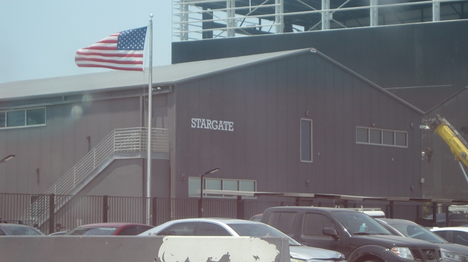 Continuing past the launch complex, the large array of plumbing on the right is where large numbers of tanker trucks back in to offload cryogenic liquids, methane and oxygen rocket fuel and oxidizer, nitrogen for cooling and pressurizing things.
