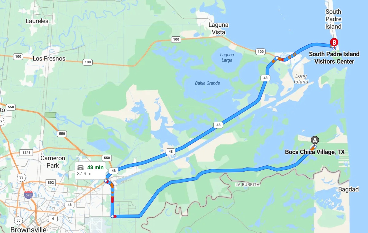 tourist land in North Carolina. We certainly didn't need to come all the way to south Texas just to find hotels and restaurants. Lots of beach access too, but that's not why we were here. We had some hope that the Visitors Center night have more information about Space-X activities, but nothing more than the single word "Starbase" on local tourist map. Pretty much a bust and waste of time coming here. One of our best sources for advance information for Starbase was "The Everyday Astronaut" web site.