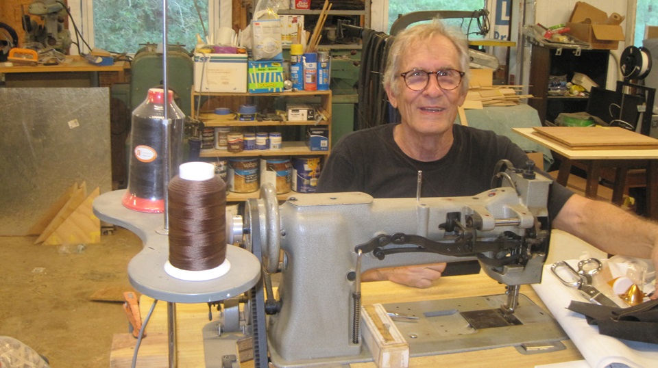 In one of his work sheds he was showing off his industrial grade walking foot sewing machine, which is capable of stitching up multiple layers of heavy vinyl or leather or carpet, suitable for most any fabric trim requirements for the vintage cars