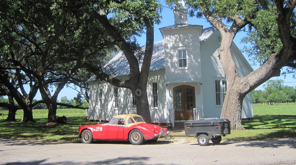 We stopped to visit Joe Bolduc in Manvel, Texas. He wanted us to park in front of the church for a photo op. The second picture is his house, which he built by his own hands, with no drawings or plans. One day a Docent from the church walked by to congratulate Joe on finishing such a nice house. Then he asked Joe if he would like a church to go with it? Apparently the church had a lot of long deferred maintenance issues, and it was time to let it go. So Joe bought the church, and proceeded to restore it, top to bottom, inside and out. By now Joe owns both sides of the street for a few blocks, and there has been substantial appreciation in property values in recent years, so I guess he did okay with his house and church.