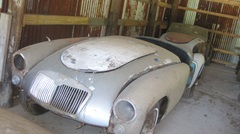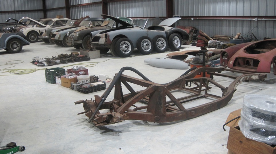 We took a little walking tour of his shop space and a few more out buildings in the area. Joe recons he has had more than a hundred MGA in his life, and still has several more to process. He has in his possession enough parts to assemble at least four MGA "Deluxe" cars, and he is shooting for six. He has at least one spare MGA Twin Cam frame, which is not for sale.