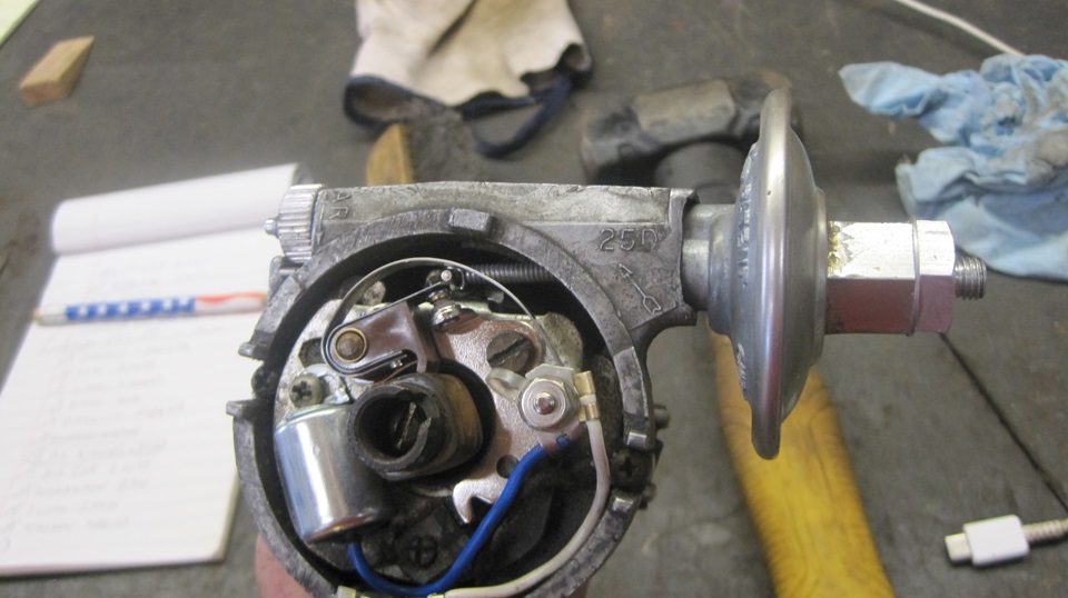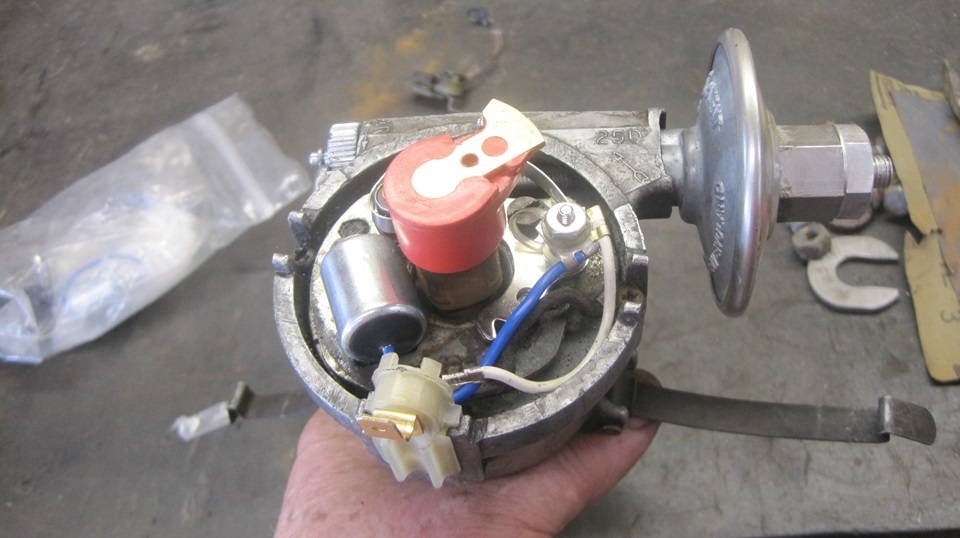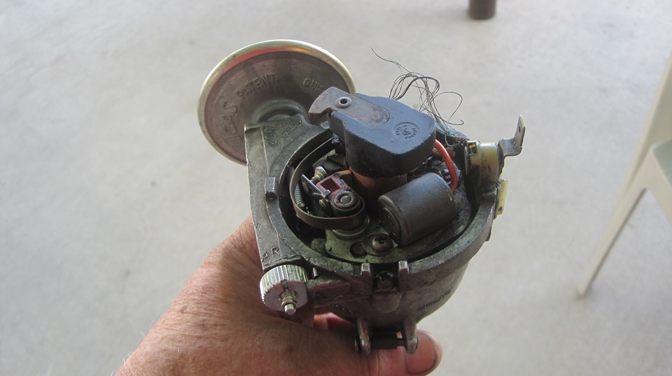 exactly 72 miles after rebuilding the distributor with new points and condenser.. Test light, on, but no blink, points not opening. Yank the distributor to set the points, but the points won't open, no adjustment range left. Hey, these were brand new points, the premium quality Intermotor points with the nice brown phenolic rubbing foot. Okay, install another set of Intermotor points, but these won't open either. The damn things have the adjustment slot in the wrong position relative to the rubbing foot, or like the rubbing foot is not long enough. - - - Okay, swear a little more, at least we know what the problem is. Install a new cheap set of points, the crappy ones with the red plastic rubbing foot that will wear out quickly and need need frequent adjustment. Correct geometry, plenty of adjustment range, and it fired right up. Cheap saves the day after expensive parts turned out to be garbage to leave us stranded on the road.